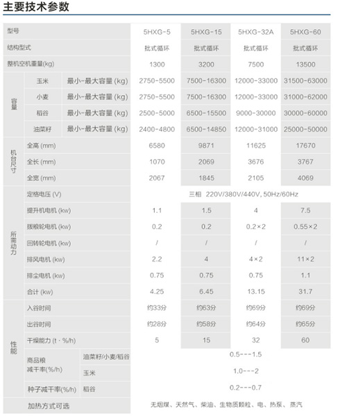 適用于各種谷物的烘干水稻、玉米、小麥、油菜籽、高粱等